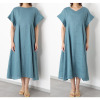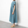 European Flax(R)という国際基準を満たした、西ヨーロッパ産の高品質のフレンチリネンを100%使用。細番手(60番)糸を使用することで、きめ細やかな表面感と美しい光沢を実現しました。袖はフレンチスリーブで、折り返すとカフスのようなアレンジが楽しめるデザイン。袖下のマチ構造により、動いた際の脇の開きを防ぎ、気になる部分も上品にカバー。上半身は身体のラインに沿い、ウエストから裾にかけて美しく広がるマーメイドシルエット。リネンの自然な落ち感により縦長効果を生み出します。