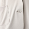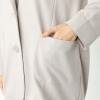 かっちりとしたメンズライクなジャケットではなく、緩やかなカーブを描く裾や角を丸く仕上げた大きめのパッチポケットが女性らしいやさしい印象を添えています。