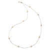 大阪・泉州産の幅8mmUPの貝パールをあしらった、ロングネックレスです。ステーション状に貝パールを配した、リズム感のあるスタイリッシュなデザイン。繊細なファセットチェーンが、胸元に高級感のある輝きを添えます。
