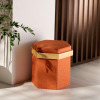 美しい配色でインテリアのアクセントになりながら、1台3役の機能を果たしてくれる北欧風のおしゃれなスツール。スツールとしてはもちろん、収納ボックスとして、クッションを外せばサイドテーブルとしてなど、さまざまな用途で活躍してくれます。クッション部分は2層構造のしっかりとしたつくりで座り心地も良好。使わない時はコンパクトに折りたたんで、場所をとらずに収納できます。張地ははっ水加工をほどこしているので、水をこぼしてもサッとふき取れてお手入れも簡単。色違いでお求めいただいた際にも、バランスのとりやすいカラーを厳選しています。