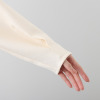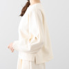 袖とバスト部分にはボリュームを持たせながらも、切り替えを入れることでシルエットを曖昧にし、優美なラインを表現しました。