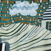 丘の上の家や木々、太陽をモティーフにした風景が、まるでアートのように大胆かつ繊細に描かれています。