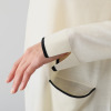 ネックラインと袖口、ポケット口に配した配色ラインがアクセントになっています。