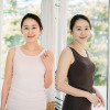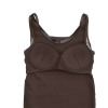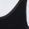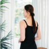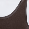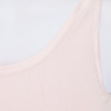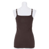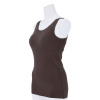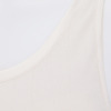 内側のアンダー部分には柔らかくフィット性のあるゴムを使用し、安定感を持たせました。肩からアームホールにかけてのラインは、脇肉や段差が出にくいよう脇高に設計。背中上部分の二重仕立てと長めの着丈で安心感もプラス。洗濯ネームはプリント仕様にしているので、やさしい肌当たりもポイントです。