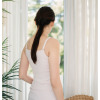 身生地や背中の肌側(綿ベア天)、カップ裏側・乳間部分(綿天竺)に抗菌防臭加工をほどこした素材を使用。綿を高混率に用いたダイヤ柄の身生地を採用。胸元はUネックラインにストレッチサテンをほどこし、シャープさと華やかさを演出しました。カップはサイズごとに大きさを微調整した、当ブランドオリジナル仕様。楽な着心地のノンワイヤー仕様ながら、カップが脇に流れる胸を包み込む形状のため美しいバストを実現。肩ひものアジャスターでカップの位置を調整できるのもうれしいポイント。カップを胸に合わせて吊り上げる仕組みで、幅広い女性の胸の大きさに対応します。