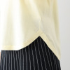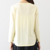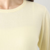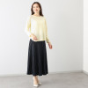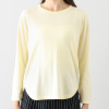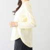 襟ぐりは浅めのクルーネックで、後ろが長い前後差のある着丈に設定。袖山を高く取り、袖山とアームホールに減らし目を入れて、腕がほっそりと見えるように設計。前からきれいに見えるよう、脇線を前身頃側に寄せ、脇をすっきりさせることで着やせ効果も期待できます。