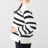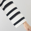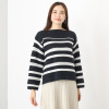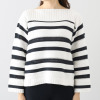 数種類の編地を駆使した配色ボーダーデザイン。高級感のあるざっくり感が目を惹く大人のマリンニット。