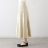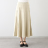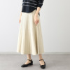 綿混素材の風合いと編み技術が織り成す上品なプリーツ見えデザイン。歩くたびに揺れる陰影がエレガント。