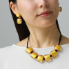 シンプルなスクエアシェイプに、丸みのあるラインを加えたレジンが、耳元を印象的に彩ります。