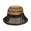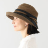 緩やかなフォルムでお顔周りを包むやさしいシルエット。サイドのデザインがさりげない女性らしさをプラスし、つば先の上がった部分が全体を引き締めるアクセントになっています。つば広のデザインがお顔周りをカバーし、気になる日差しよけとしてもおすすめ。シックな色合いが大人の上品なカジュアルスタイルにマッチします。