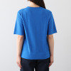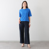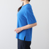 やや長めの着丈で、気になるお腹周りもさりげなくカバー。天竺編みの裏目を表にすることで装飾面を増やし、煌めきを最大限に引き出した編地設計も特徴です。イージーケア仕様なので、特別な日だけでなく日常着としても気負わずに着用できる一枚です。