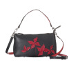 牛革シュリンク型押しにクロコのリーフデザインが映える。シーンに合わせて付け替え可能な2ウェイ仕様。