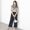クルーネックの襟ぐりを太めにとることで、シンプルでベーシックなデザインにアクセントをプラス。ジャケットやカーディガンのインナーとしても活躍し、スタイリッシュな印象を与えます。