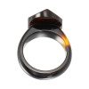 しっかりと厚みのあるオーバルパーツにさらにカットをほどこし、リング本体にセットした存在感のある仕上がり。