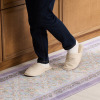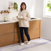 お肌が触れる表地には、なめらかで柔らかな極細マイクロポリエステル素材を使用。3層構造なので、薄くコンパクトでもしっかり感のあるつくりです。洗濯機で丸洗い(ネット使用)ができ、軽量なので持ち運びも簡単。やわらかく、折りたためるため収納する際も便利。ソファの前や寝室のベッド脇、キッチンや廊下などさまざまな場所に敷いてお使いいただけます。
