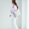 前面に配したダブルファスナーポケットは、スマートフォンなどを収納するのに便利。キラリと光るプレートが、デザインのアクセント。メイン室は仕切りを配したことで、仕分け収納しやすいつくりに。ハンドバッグとしてもお使いいただける2ウェイ仕様です。