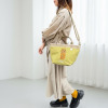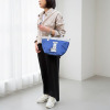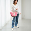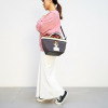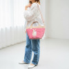 当ブランドで人気の柄を刺しゅうした、かわいらしいデザイン。小ぶりなサイズ感ながら、マチをしっかりと配しているため、長財布やポーチ、スマートフォン、ペットボトルなど、身の回りの小物が入る見た目以上の収納力があります。