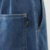 本格的なデニム仕様にこだわり、サイドポケットにはリベットを使用し、前開き部分にはネオバーボタンを採用しています。