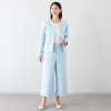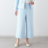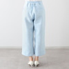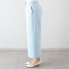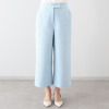 脚のラインをカバーするゆったりしたクロップト丈のワイドシルエットは、脚さばき良く、美脚見え効果も発揮。ウエストベルトの前持ち出しを長めに設計し、端がめくれにくいようにして、ウエスト周りがすっきり見えるように仕上げました。後ろ中心のみゴム仕様にして、きちんと感とはき心地の良さを両立。