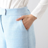 ファンシーツイードを使用したクロップトパンツです。形状の異なる4種類の糸を織り込んだ、立体感と奥行きのある華やかな表情が魅力のツイード生地は、同系色で統一されているため上品さが際立ち、多様なコーディネイトが楽しめます。