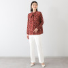 高さのあるバンドカラーは気になる首元をカバーし、ボウタイは襟元のボタンで簡単に取り外しが可能。取り外せばシンプルなキーネックとなり、アクセサリーとの相性も抜群です。クラシカルな雰囲気のボリュームスリーブのカフスは、後ろ半分にゴムを配し袖通し良く仕上げました。