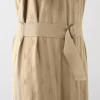 ゆったりとしたボックスシルエットは身体のラインを拾いにくく、リラックスした着心地を提供。付属の共糸のベルトを用いてウエストマークすることで、シルエットに変化をつけられます。装飾品のような美しいべっ甲調のバックルには、やさしい光沢感と温かみがあり、Dカンを2個使用することで装着時の安定感を高めました。