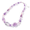さまざまな色味やシェイプのアメシストと、ローズクォーツを贅沢に使用したネックレスです。タンブルシェイプのアメシストのフォルムの楽しさ、ボリュームを楽しめる仕上がり。アメシストの艶やかなテリ立ちと輝きが、上品ながらも華やかな印象を演出します。自然が作り出したアメシストの微妙な色合いを1つずつ丁寧に検品し、1本のネックレスの中で色合わせを行っています。熟練の職人が手作業で一つ一つ仕立てることで、胸元になめらかに沿う仕上がりに。