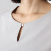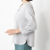 ラウンドネックの襟ぐりは見返し始末でステッチが表に出ない繊細な仕様。