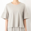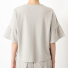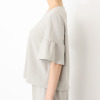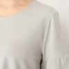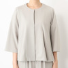 ブラウスは、気になるお腹周りをしっかりとカバーするAラインシルエットにデザインし、気になる二の腕をカバーするベルスリーブを採用しました。