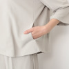 ゆったりと楽に着用できる羽織りジャケットは、長時間の着用でも快適。広めのアームホールとゆったりとした袖幅により、さっと羽織りやすく、お手持ちのインナーとも相性抜群です。3面構造による立体的なシルエットが、気になるお腹周りを自然にカバーします。