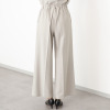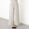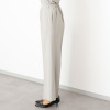パンツは、リラックス感のあるゆったりとしたストレートラインのプルオンタイプ。ウエストは総ゴム仕様ながら、前はすっきりと、後ろはギャザーをしっかりと寄せ、きちんと感とはき心地の良さを両立。フロントのインタックをセンタープレスにつなげることで縦のラインを強調し、脚をほっそり長く見える工夫を取り入れました。