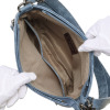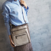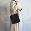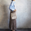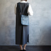 ポケットを複数設けた、小物を整理収納しやすいつくり。フロントのファスナーポケットがデザインのアクセントとなり、全体の印象を引き締めます。ショルダーストラップは取り外し可能で、お好みのストラップに付け替えることも素敵です。