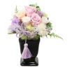 バラをメインに使用。春が待ち遠しくなるようなパステルカラーをメインに、豪華で色鮮やかなバラをあしらいました。お仏壇を明るく華やかに彩り、和洋こだわらず、お仏壇以外でインテリアとして飾ることもおすすめ。