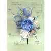 輪菊をメインに使用。梅雨の時期を青と白の爽やかな色合いで、気分もスッキリと穏やかに過ごせる雰囲気に仕立てました。