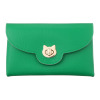 環境に配慮した生産者として“LWG(レザーワーキンググループ)”のゴールドランク認証を取得しているイタリア“ポレット社”のダブルフェイスレザーを使用。通常のダブルフェイスレザーとは異なり、革の裏面に特殊な処理をほどこすことで両面とも表革のような風合いに仕上げました。これにより、しなやかさと軽さを生かしたまま、裏地なしの製品に仕上げることが可能に。しっとりと手になじむ柔らかさと適度なハリ感があり、高級感のある風合い。使い込むことでさらに色味と艶が増し、より味わい深い印象へと変化していきます。↑フロントに配されたねこモティーフのひねり金具がアクセント。アンティーク調の落ち着いたカラーリングで、かわいくなりすぎない絶妙なバランスを実現しました。収納力があり、整理しやすく使い勝手の良い構造も魅力。