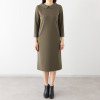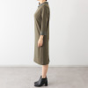 ボックス型のゆったりとしたサイズ感と素材の立体感で身体のラインを拾いにくく、シックですっきりと着こなせます。着丈はふくらはぎにかかるくらいで、ロングすぎず脚さばきも良好。