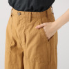 一年を通してデイリーに活躍する、人気のベイカーパンツに仕立てました。フロントとバッグに配した大きめのポケットがデザインのアクセントに。股上は深くゆったりとしたルーズな印象ではきやすく、脚長効果も。はき心地を考慮し、ヒップや脚周りにゆとりを持たせました。裾にやや幅のあるステッチをほどこしており、ロールアップしてもきまります。