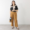 大人の余裕を感じさせるバックサテンの上質な素材感。ワイドなシルエットで動きやすさとトレンド感を両立。