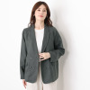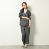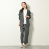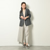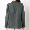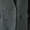 ダブルフロントにテーラーカラーを組み合わせた洗練されたデザインながら、通常のジャケットより低めに設定されたボタン位置が胸元に開きを作り、重たくならない印象を与えます。リネン特有のハリ感が美しいシルエットを生み、身体のラインを拾いすぎない絶妙な構築美を実現。裏地を省いたアンコン仕立てで驚くほど軽く、まるでカーディガン感覚で気軽に羽織れます。
