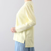 無地ベースのシンプルなデザインなので、さまざまなボトムスや羽織りものとの相性も抜群。裏側の芯地を薄く設計しているため、ごわつきを感じにくく快適な着心地です。