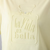 “La Vida es bella(人生は美しい)”というスペイン語のメッセージを香水瓶モティーフの中にエンボス加工でほどこした立体的なデザイン。インクを使わないさりげない表現ながら、高級感と洗練された雰囲気を醸し出しています。大粒ダイヤのようなラインストーンがアクセントとなり、控えめながらも存在感があります。