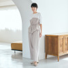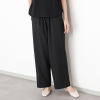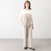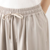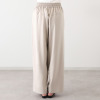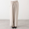 総ゴム仕様のウエストにドローストリングを配しており、サイズの調整が可能。両脇に左右4本の切り替えをほどこし、さらに切り替え部分の前にも切り替え入れることで、縦に長いシルエットを強調しました。体型カバーを考慮した設計で、快適さと見た目の良さを両立させています。