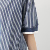 ポリエステルとコットンを混紡した、当ブランドオリジナルのストライプ生地を本体に使用。コットンの爽やかな肌触りとしなやかな動きが特徴で、シワになりにくく、イージーケアな着心地がポイント。ストライプの動きがカジュアル感を演出しつつ、トラッドな雰囲気も醸し出します。