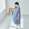 スタイル・ラヴィー 袖リブバイカラー& 切替アクセント オリジナルストライプ バンドカラーワンピース