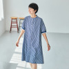 オリジナルのストライプ柄がもたらす大人カジュアル。前開き仕様で羽織りとしても活躍します。