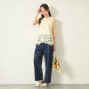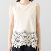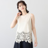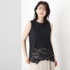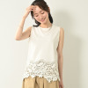元町ゼラール ギザコットン混 プレーティングジャージー 華やかレーストリミング ノースリーブプルオーバー