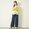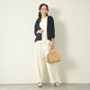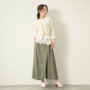 裾には、当ブランド独自のデザインをほどこした贅沢なエンブロイダリーレースを使用。ペイズリーやボタニカルなモティーフが組み合わさった、緻密で高級感のある出来栄えです。細部まで計算された一体感のある仕立てにより、品格を自然と引き立ててくれそう。お尻周りや太ももをさりげなくカバーするロング丈で、レースのスカラップが視線を分散し、体形カバーも叶えます。