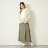 肩幅と身幅はコンパクトに設定。肘下まで隠れる袖丈で、二の腕をカバーしつつ涼やかに着ていただけます。表からは見えないスナップボタン仕様。着丈は短めのため、ボレロのようにさっと羽織ったり、ボタンを閉めてプルオーバーとして着用したりするのもおすすめです。