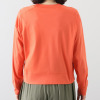 襟ぐりは、首元にフィットする美しいラウンドネック。共生地ダブル付けで仕上げることで、浮きのない整ったラインを実現しました。襟や裾、袖やカフスの切り替え部分は、すべてまたぎ2本針で仕上げた、細かいステッチワークと美しい切り替えデザインが特徴です。