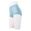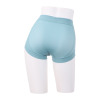 前身頃中心には裏打ち付きの二重仕立てで透け防止効果も備えています。サイドからヒップ下にかけても裏打ちを施し、ヒップをしっかり支えるシェイプ効果も。ボーイズレッグタイプの形状でお尻の下までしっかり包み込み、ずり上がりを軽減。さらにそけい部の圧迫を和らげる工夫も取り入れています。